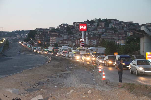 Uzun süre beklemek zorunda kalan sürücüler duruma tepki gösterirken, iş çıkış saatinin de eklenmesiyle trafik tamamen kilitlendi.