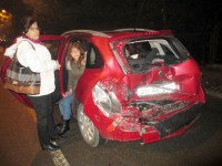 kamyon, bir anda duran otomobile çarptı. Çarpmanın etkisiyle araç içinde olan