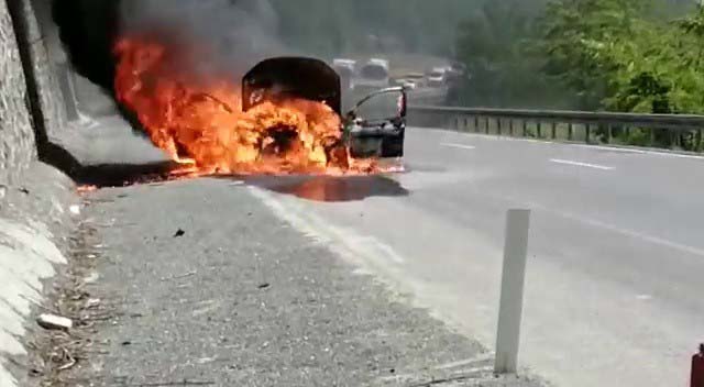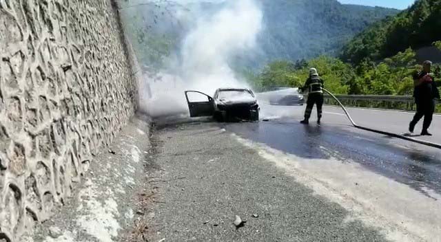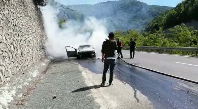 Zonguldak-Ankara Karayolunda seyir halindeki otomobil sahibinin bakışları arasında alev alev yandı.