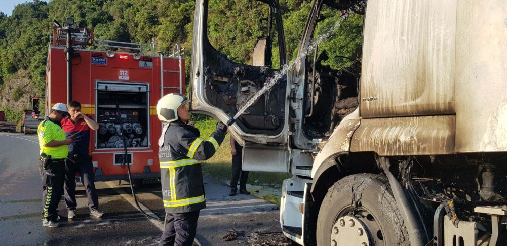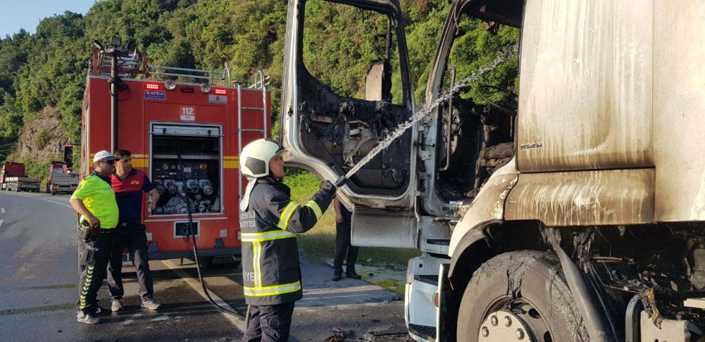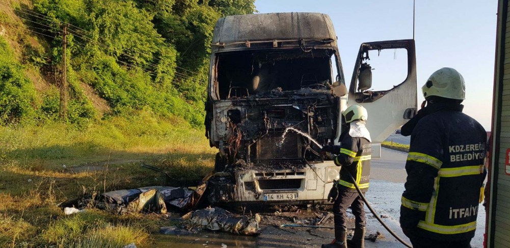 Karadeniz Ereğli ilçesinde seyir halindeki TIR alevlere teslim oldu. Sürücüsü ise son anda yanmaktan kurtuldu.
