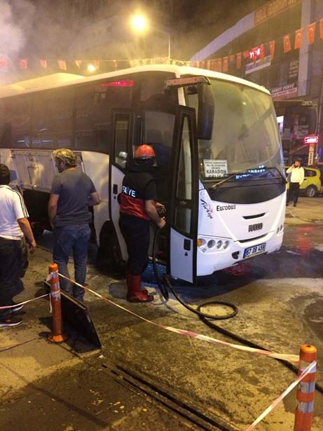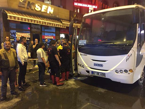 Zonguldak'ta madencileri taşıyan işçi servisi hareket halindeyken bir anda alev aldı.