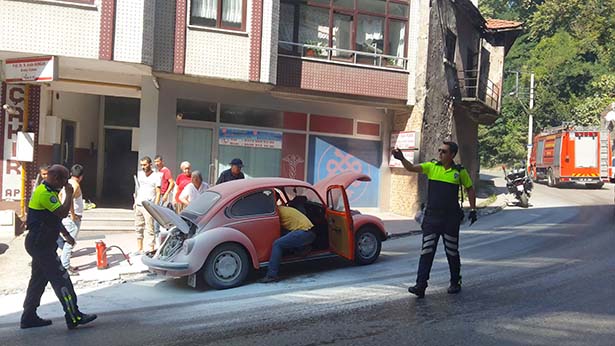Zonguldak'ta seyir halindeki otomobilin motorunda yangın çıktı. Otomobilde bulunan yaşlı çift canlarını zor kurtarırken, facia ucuz atlatıldı.