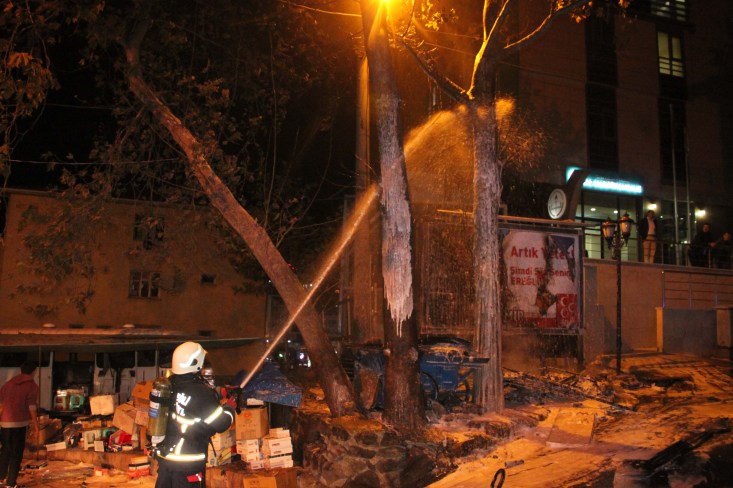 ise yangının çıkış sebebinin araştırıldığını, tezgah sahibinin hafif yanıklarla