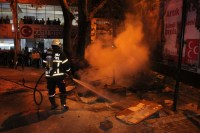 ekipleri yangına müdahale etti. Bu sırada polis de olay mahallinde güvenlik