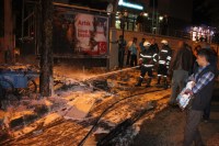 bilinmeyen nedenle yangın çıktı. Bir anda alevlerin kapladığı, tezgahta