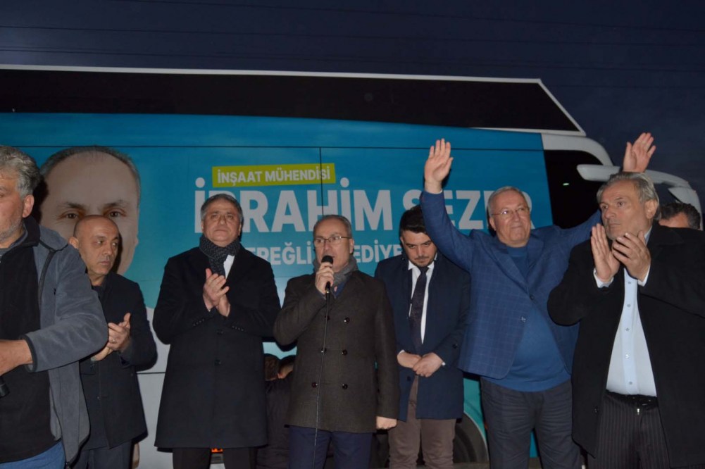 Konuşmasında bu seçimin tarihi bir fırsat olduğunu ve Saffet Bozkurt vekilliği döneminde İbrahim Sezer’in de başkan olmasıyla Ereğli’nin çok daha farklı hizmet alacağındanbahsederek, halktan Sezer’e tam destek istedi. Ayrıca yine Ereğli’nin en ücra köşesinden merkeze kadar olan tüm esnafların devletin kredi desteğinden yararlandırdıklarını ve yararlandırmaya devam edeceklerini belirtti.