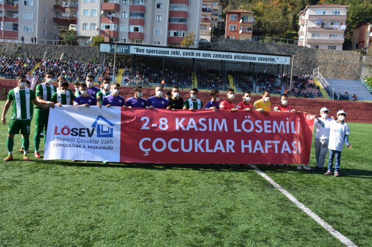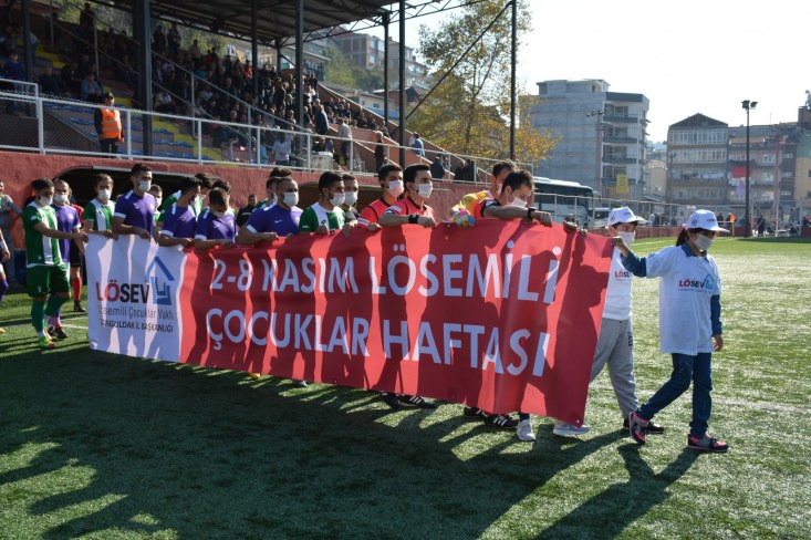 İki takım sahaya Lösemi Haftası nedeniyle hazırlanan pankartı taşıyarak ve maske takarak çıktı.