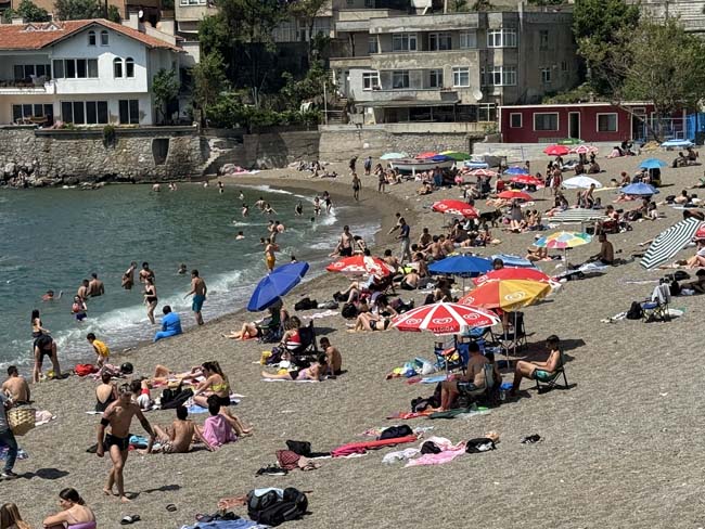 Zonguldak'ta sezonun açılmamasına rağmen yüzlerce kişi halk plajı olan Kapuz Plajı'na akın etti.