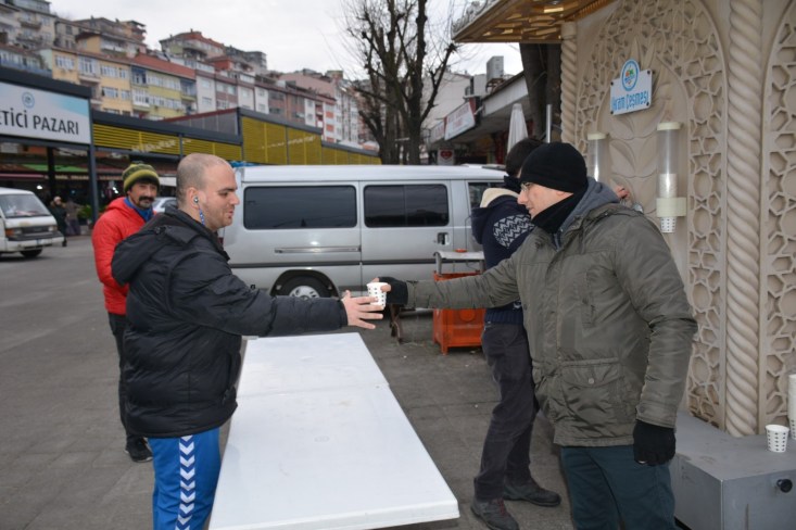Zonguldak'ın Ereğli İlçe Belediye Başkanı Hüseyin Uysal, yeni haftada merkez pazaryeri esnaflarına sıcak çorba ikram ederek başladı.