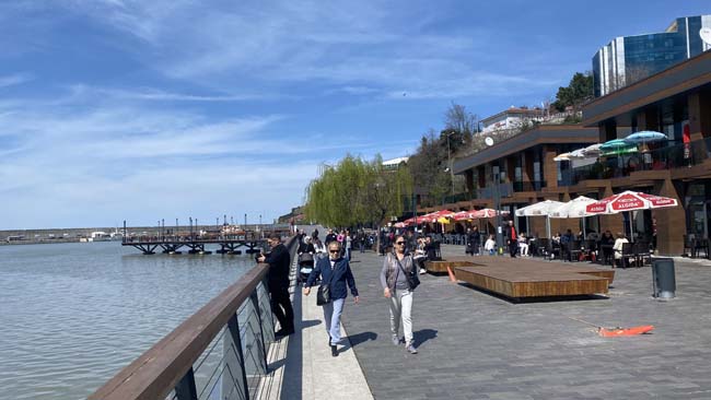Zonguldak’ta birkaç gündür devam eden sağanak yağış ve kar yağışının ardından güneş yüzünü gösterdi. 8 derecelere kadar düşen hava sıcaklığı ise artarak 17 dereceye yükseldi. Hava sıcaklığının yükselmesi ile vatandaşlar kendilerini sahile attı. Vatandaşlar güzel havada güneşlenerek, yürüyüş yaptı. Esnaf Hacı Kara, “Öncelikle herkesin Ramazan ayı mübarek olsun. Havalar çok iyi gidiyor. Bir iki gün yağmur ve kar yağdı. Arkasından güzel bir güneş bıraktı. Hava harika, herkesi sahile bekliyoruz. Sahile ilgi var. Hava güzel olunca sahilin boş kalma şansı yok. Kıştan çıktık, artık yaz moduna girdik” dedi.