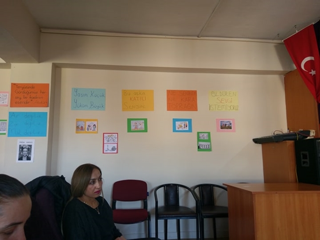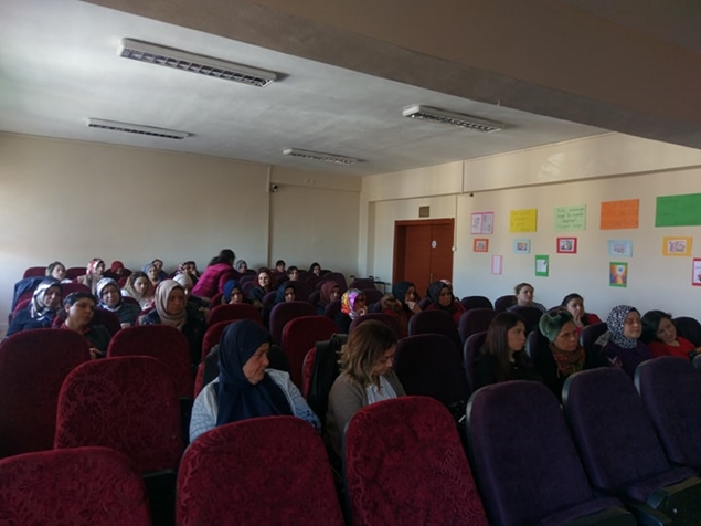 Yılmaz, Nimet İlkokulu Öğretmeni Perihan Bozdağ'ın 8 Mart Dünya Kadınlar Günü dolayısıyla okulun konferans salonunda düzenlediği etkinlikte, öğrenci velisi annelere, şiddete maruz kalan kadınların yapması gerekenlere ilişkin bilgi verdi.