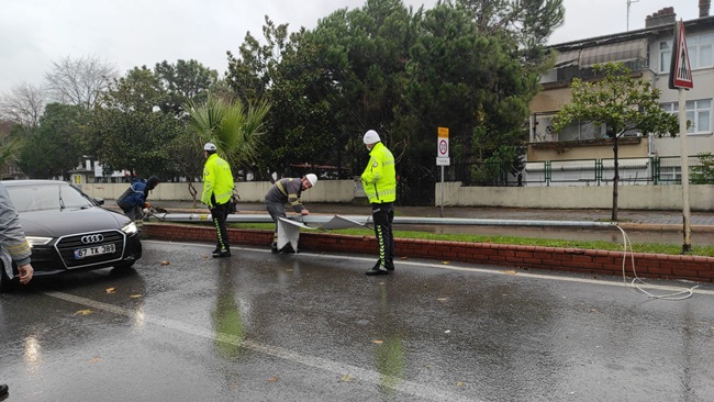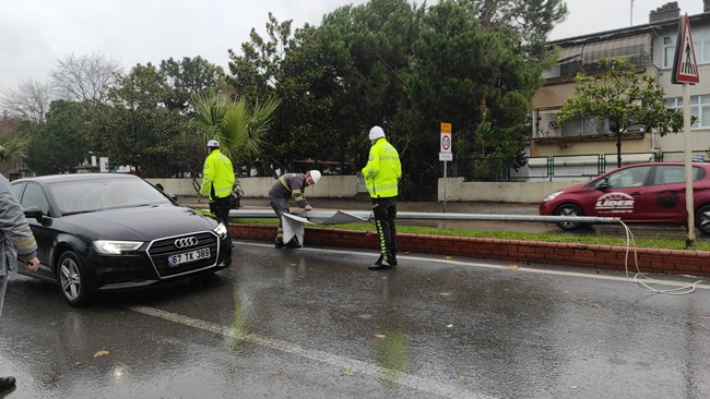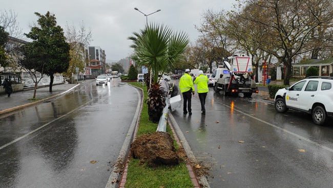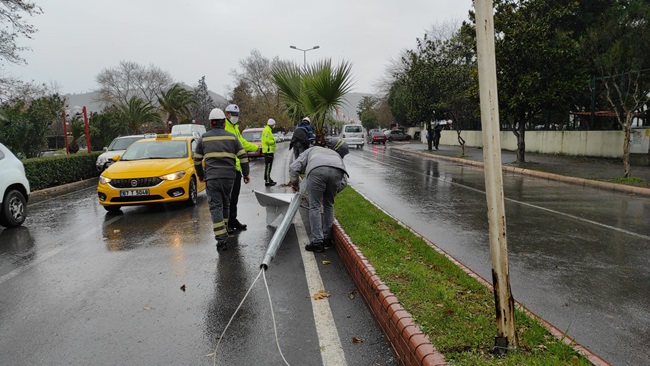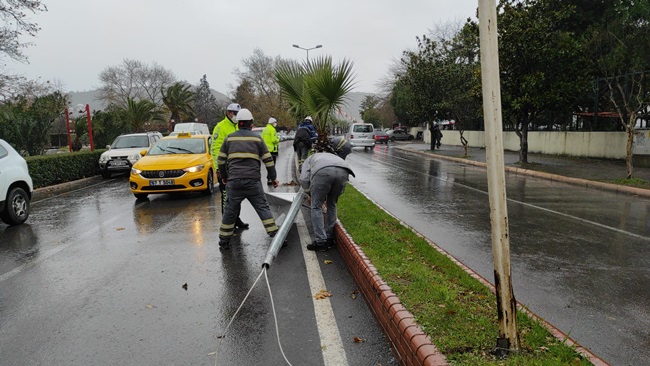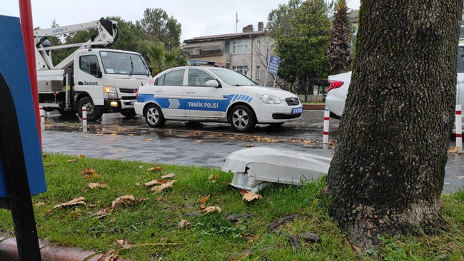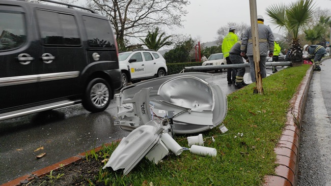 Alınan bilgilere göre; Alınan bilgilere göre; şiddetli fırtına refüjdeki aydınlatma direğini devirdi. Olayda yaralanan olmazken yıkılan direği gören vatandaşlar polis, itfaiye ve elektrik kurumu yetkililerine haber verdi. Olay yerine gelen ekipler aldıkları güvenlik önleminin ardından yıkılan direğin kaldırılması için çalışma başlattı. Çalışma sırasında trafik tek şeritten verildi.