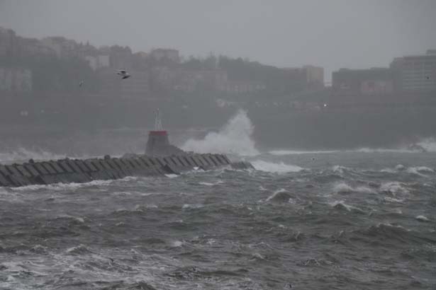 rüzgar ve yağmur nedeniyle Karadeniz'deki dalgalar şiddetini artırdı. Liman