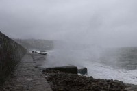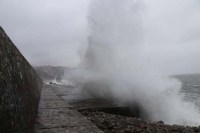 Caddesi'ndeki 7 metre yüksekliğindeki istinat duvarını aşan dalgalar zaman