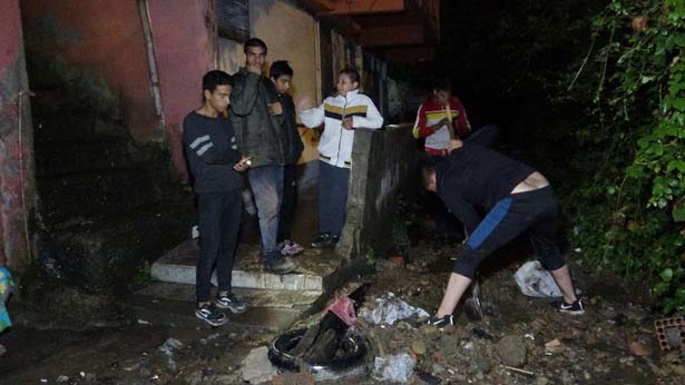 Zonguldak’ta akşam saatlerinde aniden bastıran sağanak yağış kentin belirli bölgelerinde etkili oldu. Karaelmas Mahallesinde bir evde heyelan meydana geldi. 3 ev tedbir amacıyla boşaltılırken 16 kişi evlerinden tahliye edildi. Diğer yandan yağmur sularıyla birlikte çöpler mahalleye kadar indi. Vatandaşlar kendi imkanlarıyla mahalleye yağmur suyu ile inen çakıl ve çöpleri temizleyerek yetkililerden destek istedi. Öte yandan kentin belirli noktalarında yollar göle dönerken araç sürücüleri zaman zaman zor anlar yaşadı.