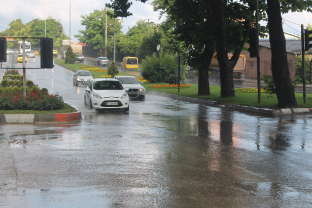 Sabahın erken saatlerinde aniden bastıran ve etkili olan şiddetli yağış nedeniyle caddeler göle dönerken trafik zaman zaman durma noktasına geldi.