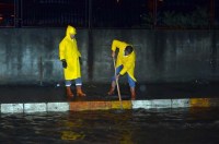göle döndü. Yolun ortasında mahsur araçlar temizlik görevlisinin yardımıyla