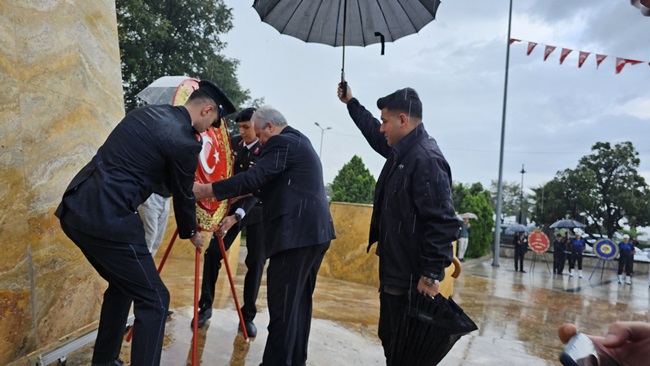 19 Eylül Gaziler Günü nedeniyle Devrim Bulvarı’nda Atatürk Anıtı’nda tören gerçekleştirildi. Şiddetli yağmur altında Atatürk Anıtı’na çelenk sunularak, saygı duruşunda bulunularak, İstiklal Marşı okundu.