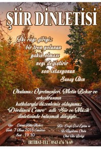 Zonguldak'ın Ereğli ilçesi Ereğli Özel eğitim ve iş uygulama okulu okul aile birliği tarafından hazırlanan 'Dördüncü Cemre' isimli şiir ve müzik dinletisi Erdemir Kültür merkezinde gerçekleştirildi. Etkinliği katılanlar okul öğretmenlerinin okuduğu şiirlerle hüzünlenirken, Metin Bekar ve orkestrasının seslendirdiği türkülerle de gönüllerince eğlendiler.