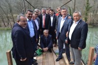 Milletvekili Çaturoğlu ile İlçe Başkanı Çakır, Ormanlı Belde Belediye Başkanı Bayram Boşol ile birlikte, Süleymanlar Köyünde bulunan çevre köylere ulaşımına yol kısaltan tarihi asmalı köprünün yenileme çalışmalarını inceledi.