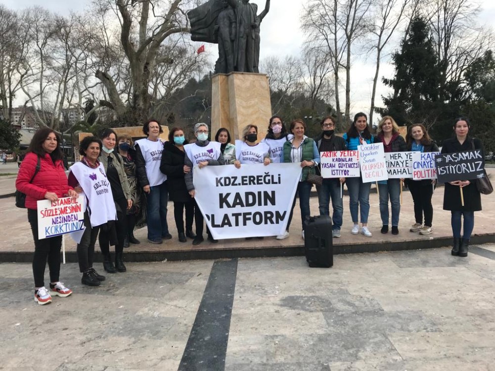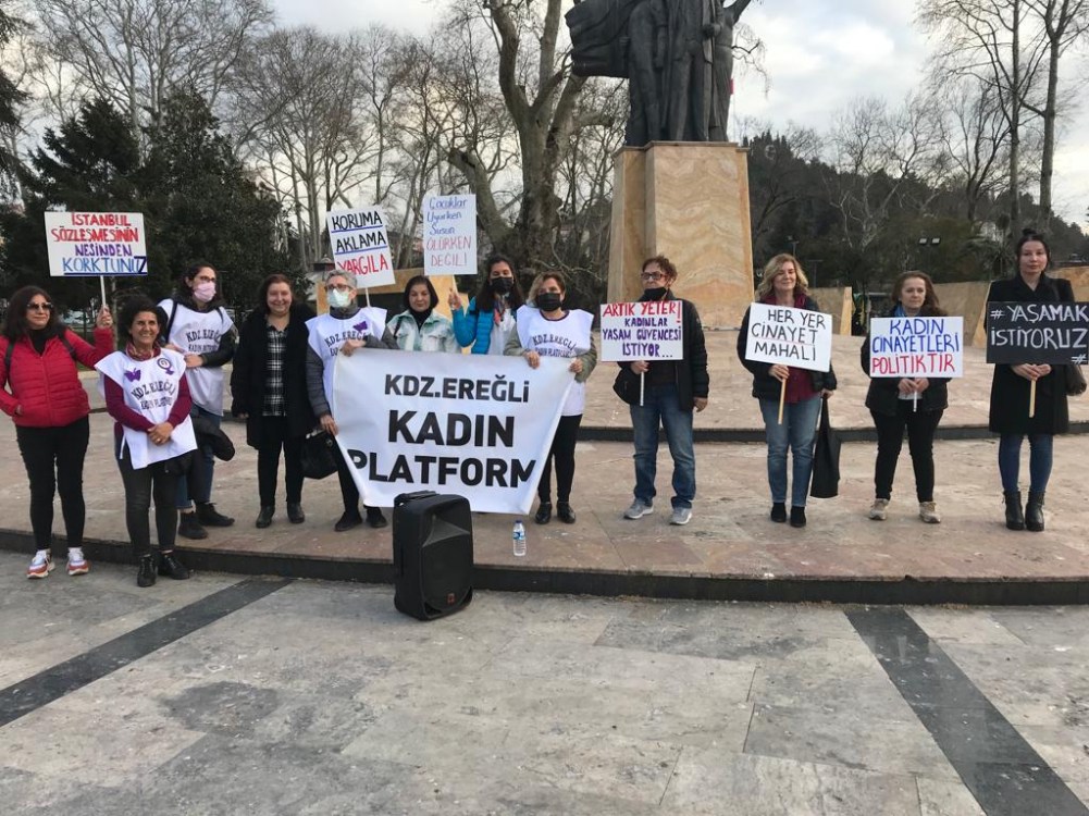 Karadeniz Ereğli’de Kadın Platformu üyeleri Atatürk Anıtı önünde kadın cinayetleri hakkında basın açıklaması yaptı.
