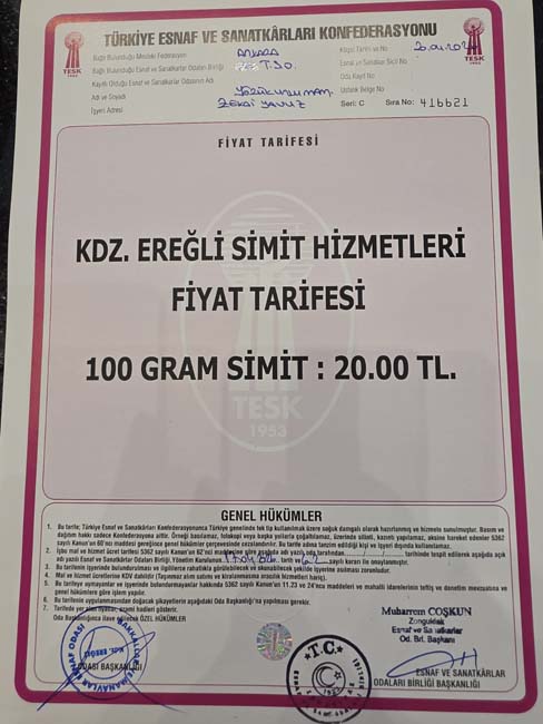 Zamlı tarifeye Kdz.Ereğli’deki bazı simit fırınları da geçerken, bazı fırınların 15 TL’den satışa devam ettiği öğrenildi.