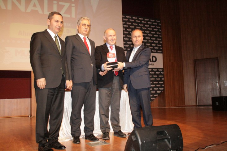 Öncesinde İstiklal Marşı'nın okunmasının ardından Kur'an tilaveti yapılan, MÜSİAD'ın tanıtım sinevizyonlarının gösterildiği konferansı Ereğli Kaymakamı Nazım Madenoğlu, Belediye Başkanı Hüseyin Uysal, AK Parti Ereğli İlçe Başkanı Mehmet Fatih Çakır, İlçe Milli Eğitim Müdürü Numan Korkmaz, Ereğli Esnaf Kredi Kefalet Kooperatifi Başkanı Hikmet Tezel, Belediye Başkan Yardımcıları, bazı belediye meclisi üyeleiri, AK Parti yöneticileri ve vatandaşlar dinledi.