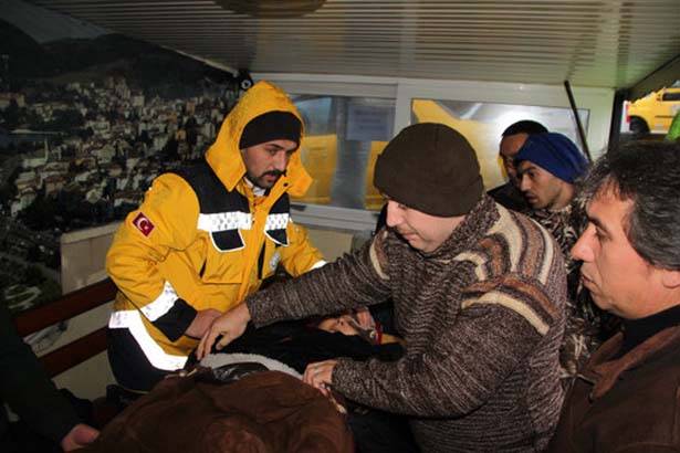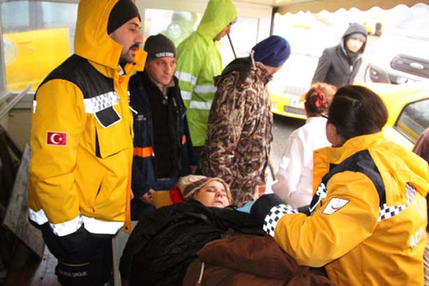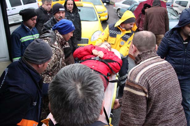 sonra yere düşen kadına çevredeki vatandaşlar ve göreve giden 112 görevlisi