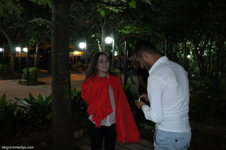 kadın çevredekilerin alkışlarını duyunca evlilik teklifini fark etti. Hayrullah