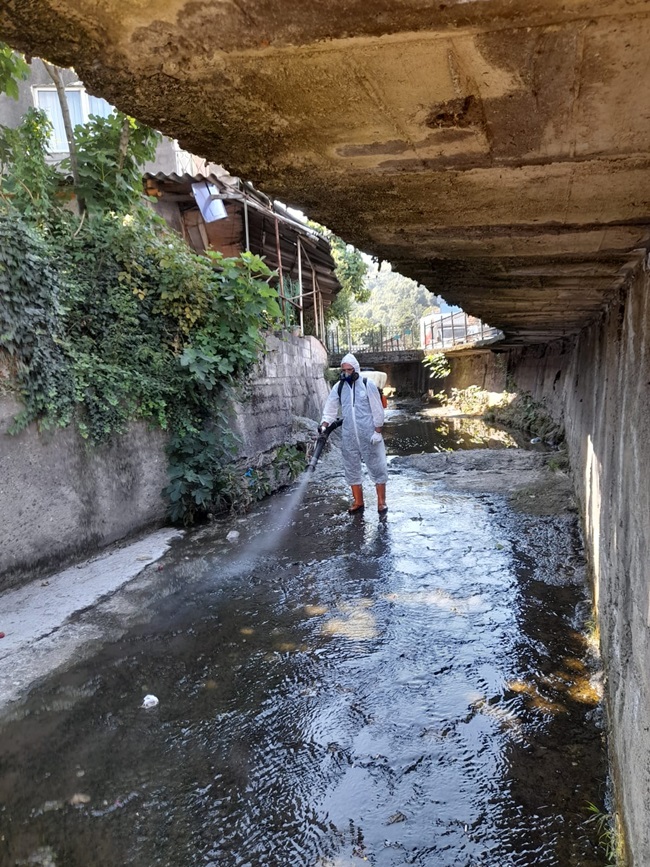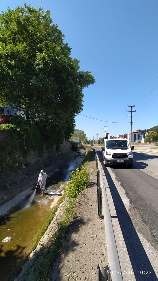 “Kdz. Ereğli Belediyesi Veteriner İşleri Müdürlüğü Vektör Kontrol ve İlaçlama Merkezi tarafından; dünya ve ülkemizde artan sivrisinek kaynaklı şikâyetler ve özellikle bölgemizde meydana gelen sel felaketinin ardından sivrisinek üreme alanları olan dere yatakları ve sulak alanlarda sivrisinek larva mücadelesi periyodik olarak devam ediyor” denildi