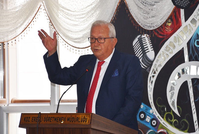 “Kdz. Ereğli Belediyesi olarak 31 mahalle muhtarımız başta olmak üzere 3 belde, 7 bölgedeki 137 muhtarımızla halkımıza hizmet götürmek için işbirliği modeli oluşturuyor, kentimizin sorunlarını birlikte aşıyoruz. Muhtarların taleplerini hiçbir bürokratik engelle karşılaşmadan Belediyemize ulaştırabilmesi ve çözüm yollarını birlikte bulmak konusunda gayret ediyoruz. Benim bekli de uzun yıllar belediye başkanlığı yapmamdaki önemli etkenlerden biri, muhtarlarla işbirliği yapmamdır. Bütün muhtarlarımıza Sayın Kaymakamımızın huzurunda şükranlarımı, teşekkürlerimi arz ediyorum. Bizde bürokrasi yok. Daha önce denenmiş usullerin hepsini terk ettik. Ekibime, direkt olarak başkan yardımcılarına, müdürlere aynı zamanda mühendislere muhtarlardan gelen her türlü talebi sizin yapma kabiliyetiniz içerisinde yapacaksınız talimatı verdim. O ona havale edip, 10 gün beklemeye gerek yok. Bölücek mahallesinde bir iş var, başkan yardımcısına ya da müdüre muhtar söylüyor, arkadaşlarımız yapıyor. Ancak başkan yardımcıları ve müdürlerin aşamayacağı bir iş olduğu zaman konu bana gelir. Bu bakımdan başarılı olduğumuz kanaatindeyim.