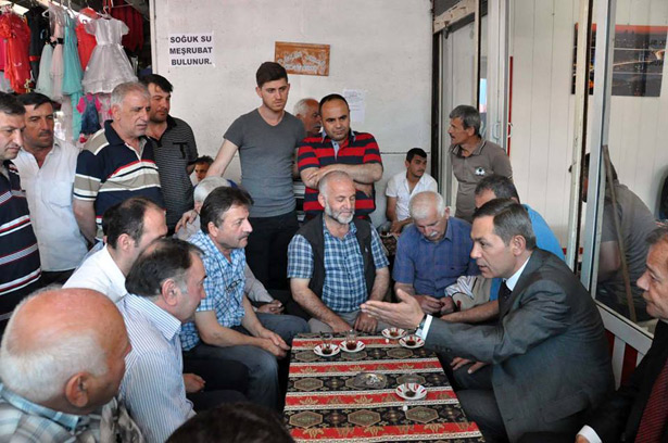 Daha sonra Pazar yerindeki dükkan sahipleri ile bir araya gelen Uysal, mevcut pazar yerine yapılması planlanan proje çalışması ile ilgili görüş alışverişinde bulundu.