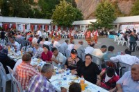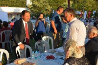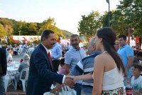 Belediye Başkanı Hüseyin Uysal ve eşi Sevim Uysal, gurbetçilerin masalarını tek tek ziyaret ederek bir süre sohbet etti.