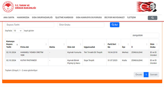 Tarım ve Orman Bakanlığı, taklit-tağşiş yapılan ve sağlığı tehlikeye düşürebilecek gıdalar listesini yayınladı. Listede Zonguldak’tan iki firma da yer aldı.