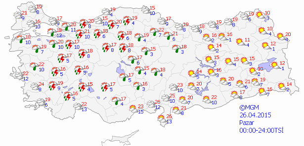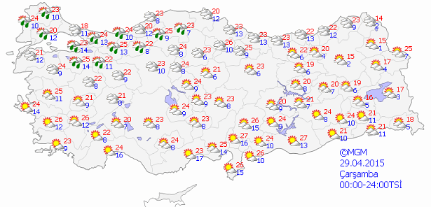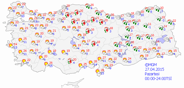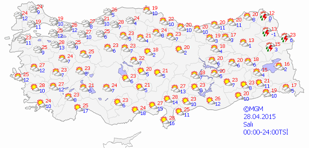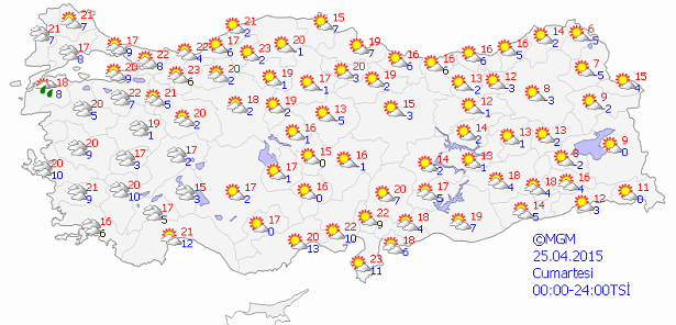 Cumartesi ise hava az bulutlu, sıcaklığın en düşük 9, en yüksek 16 derece, pazar da havanın az bulutlu, sıcaklığın en düşük 10, en yüksek 17 derece olacağı tahmin ediliyor.