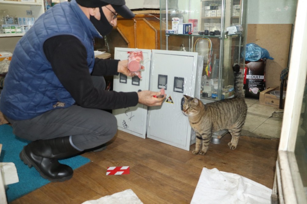 İş yerinden evine giderken önüne gelen sokak hayvanlarını da aracında sürekli olarak bulundurduğu mama ile beslediğini ifade eden Öztürk “Arabanın bagajında sürekli kedi ve köpek maması bulundururum, yolda gördüğüm bütün canlılara zaten aç olduğu belli oluyor canlıların, yaklaştığım zaman arabayı çekerim kenara avuç avuç kâğıt üzerine koyarım onlarda nasiplerini alırlar. Ben her gün 10 kilometre yol geliyorum köyden gidip geliyorum buraya. Kış zamanı yolar kapalıyken yayan geldiğim çok oldu. Geçtiğimiz 10 gün içerisinde yollar kapanmıştı, yayan olarak kepez tepesine kadar geldim oradan ise dolmuşla tekrar buraya ulaştım. Sırf burada ki kedilerin rızıklarını vermek karınlarını doyurmak için. Ben olmasam doymayacaklar mı? Doyacaklar tabi ki de benim içim el vermiyor. Ben kendi elimle doyurduğum zaman içim daha rahat ediyor. Allah razı olsun çevrede ki esnafta arkadaşlar da yardım ediyor. Ben canlılar için her şeyi yapabilirim, her zorluğu onlar için aşmaya çalışıyorum. Ben emekliyim, birde bu dükkândan üç beş kuruş gelirim var, internetten nerede uygun mama bulabilirsem, kendi imkânlarımla hiçbir yerden yardım beklemiyorum. Ama sağ olsun çevremde ki arkadaşlar bazen salam ve mama yardımı yapıyor. Ben köye gittiğim de de bir sürü beni bekleyen kedi ve köpekler var. Yolda giderken önümü kesiyorlar bende duruyorum, yiyeceklerini veriyorum yolu açıyorlar devam ediyorum. Yolda gördüğüm her türlü canlıya elimden gelen yardımı yapıyorum. Ben maddi yönüne bakmıyorum, Allah da ona göre rızkımı veriyor. Tabi zorluk çekiyoruz çekmiyor değiliz, elimden gelse daha fazla hayvanı doyurmak isterdim ama imkânım el verdiğince yapabildiğimi yapmaya çalışıyorum. Günde dükkanıma girip çıkan on tane kedi vardır, sabit duran ise üç dört tane vardır. Onlar geçinemedikleri için karınlarını doyurup gidiyorlar. Çevrede baktıklarımla beraber on beş, yirmi kedi vardır. Cumartesi Pazar dışarı çıkma iznim belgem var. Geliyorum karınlarımı doyuruyorum gidiyorum. Kaymakamlıktan izin aldım, dükkânı açmak için teknik eleman olduğumuz için arızaya falan gidiyoruz. O açıdan izin aldım, izin sayesini de onları doyurup tekrar evime dönüyorum. Dükkânın üstün de de yatıyorlar kalkıyorlar. Orada yatacak yerleri var gece çıkıyorlar, bazen geliyorum yabancı kediler var. Sabah ben gelince tıkır tıkır gidiyorlar, kapının altı açık olduğu için girip çıkabiliyorlar. Onlar için kapılarım her zaman açık, canlılara” dedi.