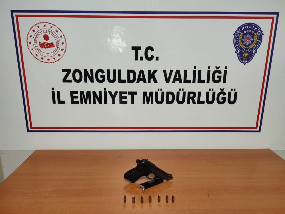 İlçemiz Erdemir Caddesi üzerinde Ekiplerimizce kontrol edilen M.A isimli şahıstan 1 adet 7.65 mm çapında Ruhsatsız tabanca ve bu tabancaya ait şarjör içerisinde 7 adet fişek ele geçirilmiş olup şahıs hakkında 6136 sayılı Kanuna Muhalefet suçundan adli işlem yapılmıştır. Kamuoyuna saygıyla duyurulur” denildi.