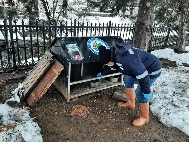 Yoğun kar yağışının da etkisiyle yiyecek bulmakta zorlanan, sokak hayvanları için belediye ekipleri besleme çalışmalarına devam ediyor. Veteriner İşleri Müdürlüğü ekiplerince düzenlenen besleme çalışmalarında, toplamda 110 ayrı noktada sokak hayvanları beslenirken, sokak hayvanları beslenme noktalarına da mama bırakıldı. Vatandaşların ise bu zorlu süreçte kapılarının önlerine 1 kap mama ve 1 kap su bırakmaları istendi.