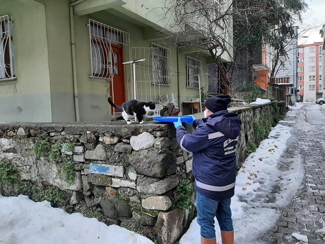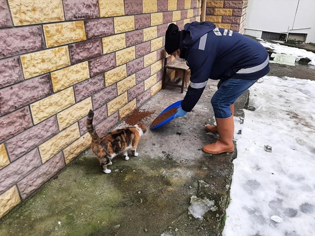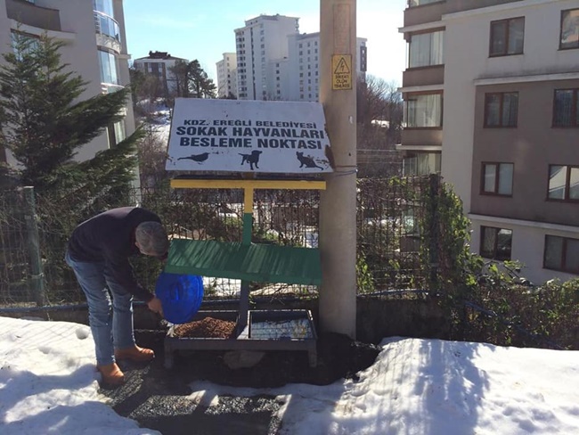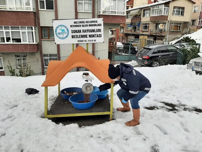 Karadeniz Ereğli belediyesi, yemek bulmakta zorlanan sokak hayvanları için besleme çalışmalarına devam ediyor.