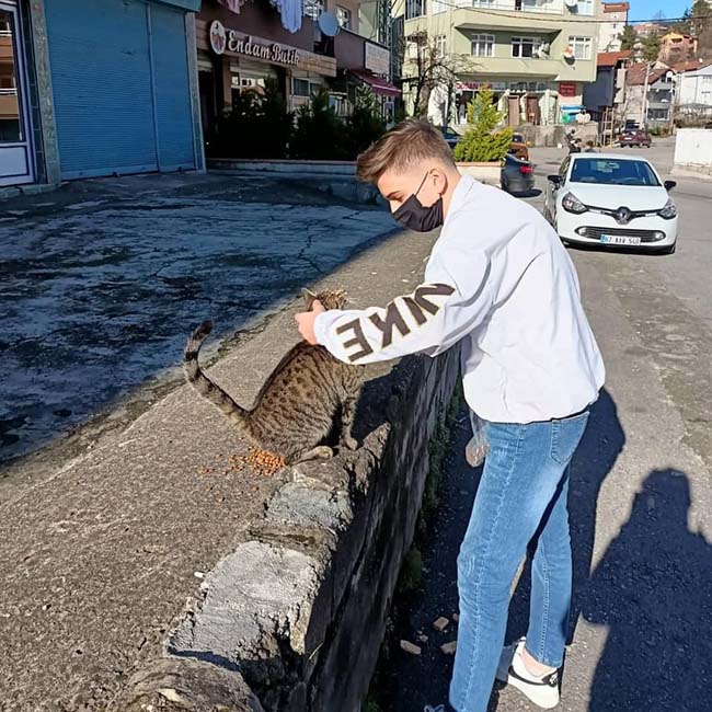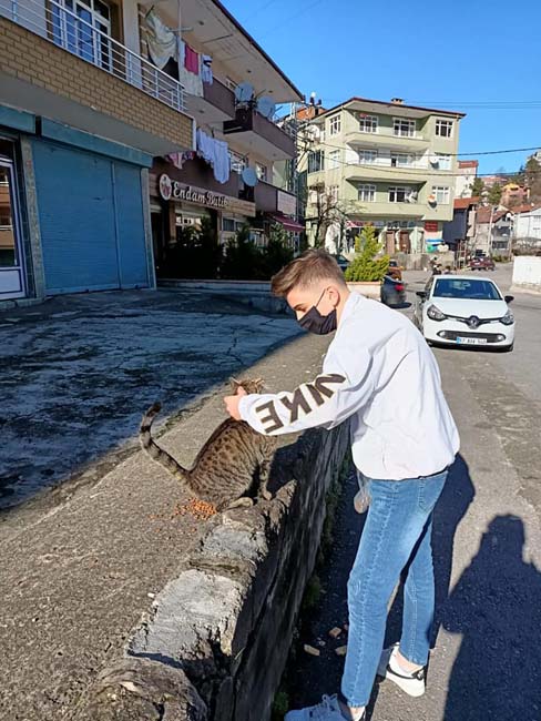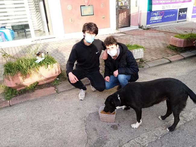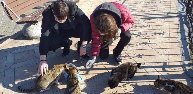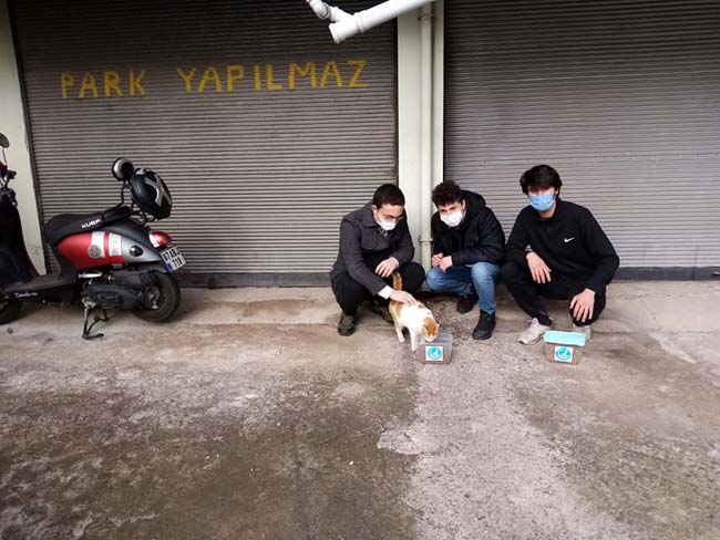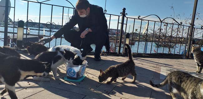 Sokak hayvanları için mama dağıttılar…