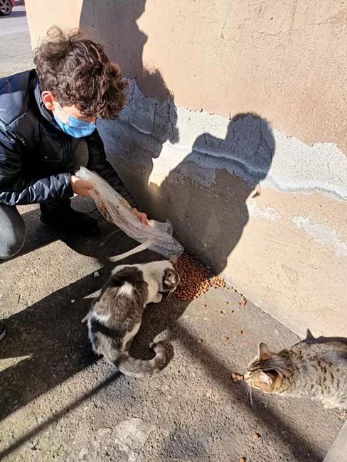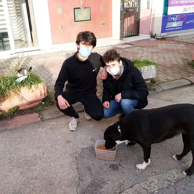 Karadeniz Ereğli Ülkü Ocakları İlçe Başkanlığı, koronavirüs pandemisi ve soğuk hava şartları dolayısıyla yiyecek bulmakta güçlük çeken sokak hayvanları için mama dağıtımı gerçekleştirdi.