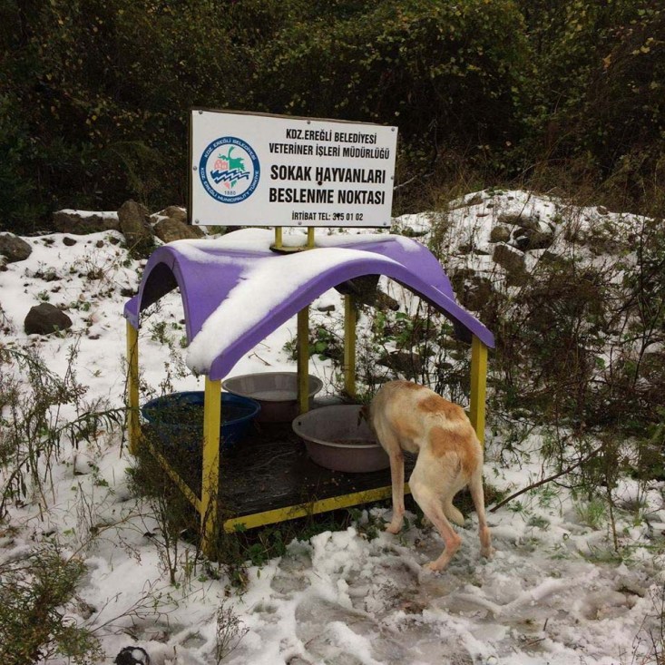 Kdz.Ereğli Belediyesi Sokak Hayvanları Bakım ve Rehabilitasyon Merkezince, ilçenin değişik noktalarındaki 14 adet sokak hayvanları besleme evi ve 3 adet kedi beslenme evinde sokak hayvanlarının günlük ihtiyaçları karşılanıyor.