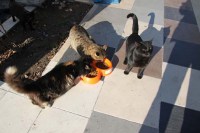 hayvanlarına dağıttı. Mamaların etrafında bir anda toplanan kedileri seven