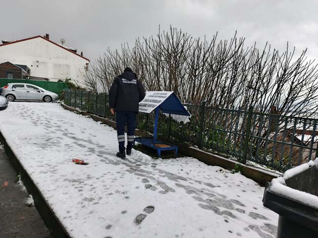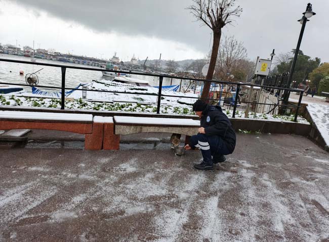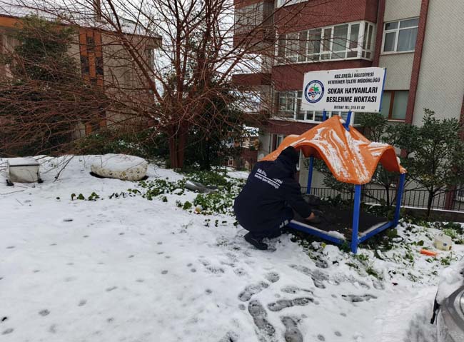 Kdz. Ereğli Belediyesi Veteriner İşleri Müdürlüğü ekipleri, sabah saatlerinden itibaren kentte etkili olan kar yağışı ve soğuk havada sokaktaki canları unutmadı.