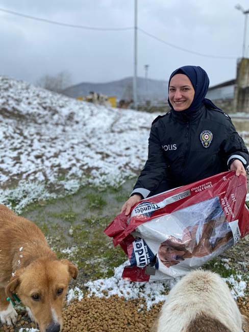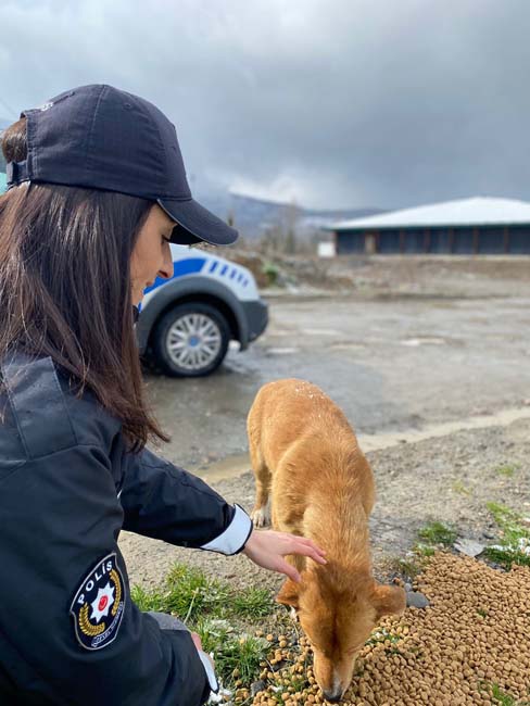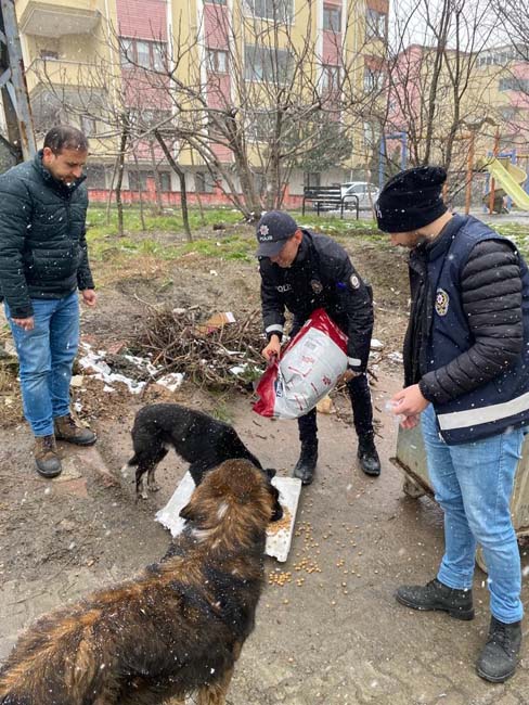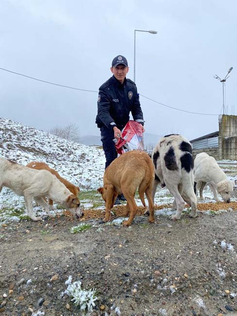 Çaycuma İlçe Emniyet personeli tarafından soğuk kış günlerinde yiyecek bulmakta zorlanan sokak hayvanları beslendi.
