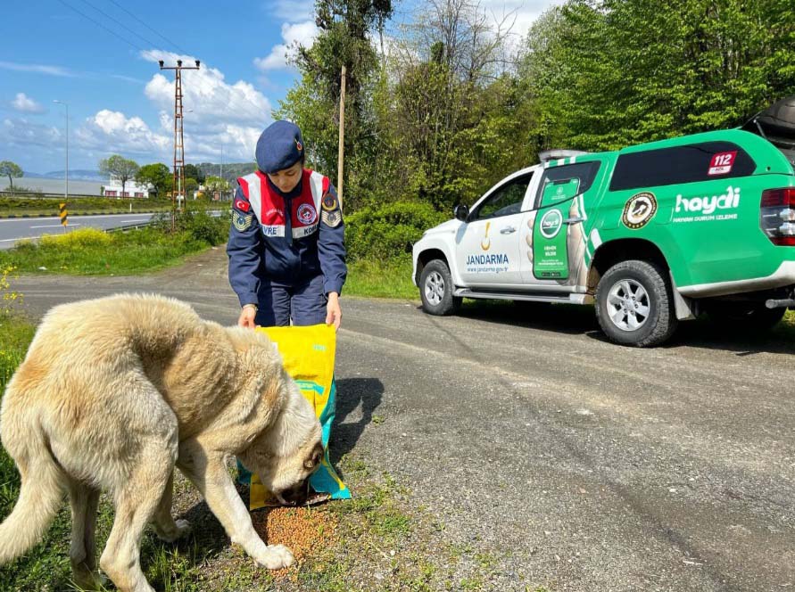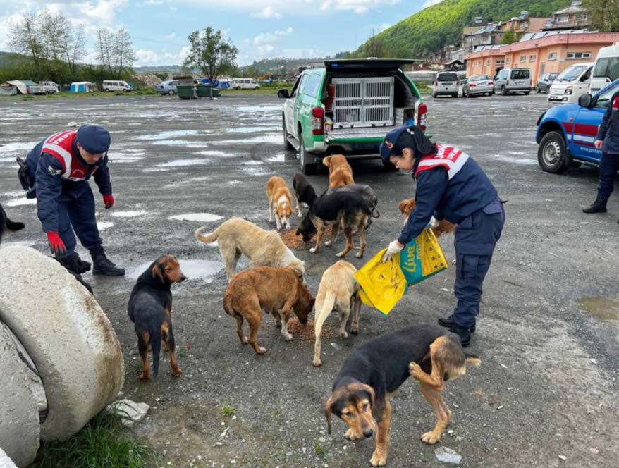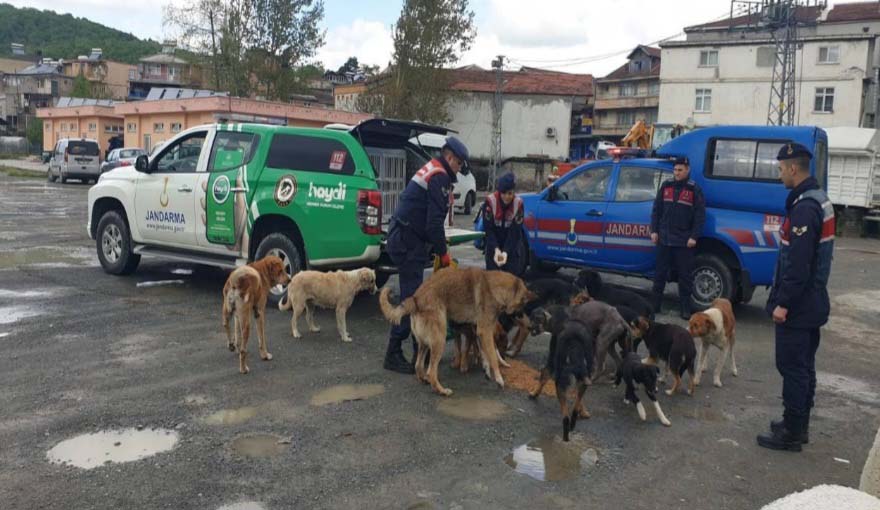 "Zonguldak İl Jandarma Komutanlığı, Çevre, Doğa ve Hayvanları Koruma Timince 27 Nisan 2023 günü icra edilen önleyici kolluk devriyesi esnasında, Alaplı ilçesi sorumluluk alanında beslenme sıkıntısı çeken sahipsiz sokak hayvanlarının yiyecek ihtiyaçları karşılanmıştır." denildi.