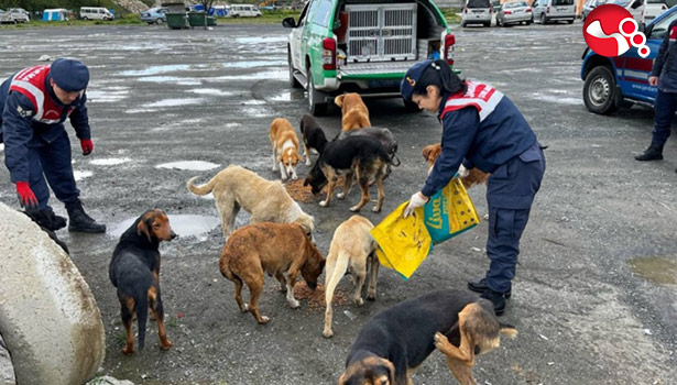 Zonguldak'ın Alaplı İlçesinde Jandarma Çevre, Doğa ve Hayvanları Koruma Timi sahipsiz sokak hayvanlarına yiyecek vererek beslenme ihtiyaçlarını karşıladı.