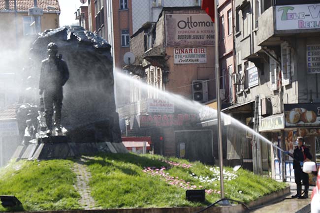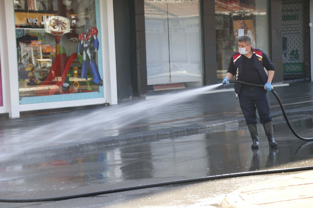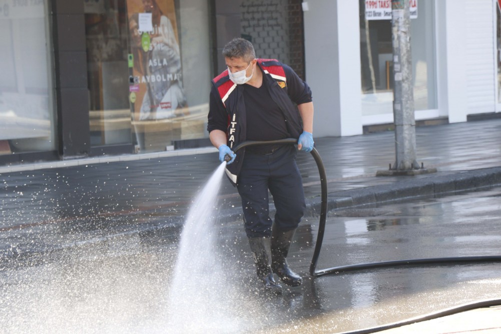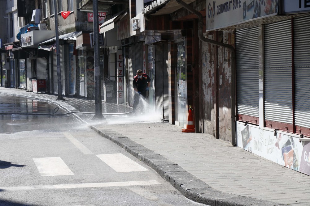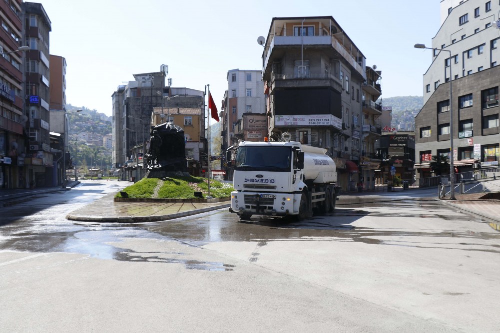 Zonguldak'ta sokağa çıkma kısıtlamasının ardından sokaklar boş kaldı. Ekipler ise sabahın erken saatlerinden itibaren başladıkları dezenfekte çalışmalarını sürdürüyor.