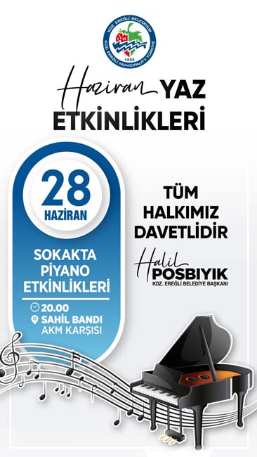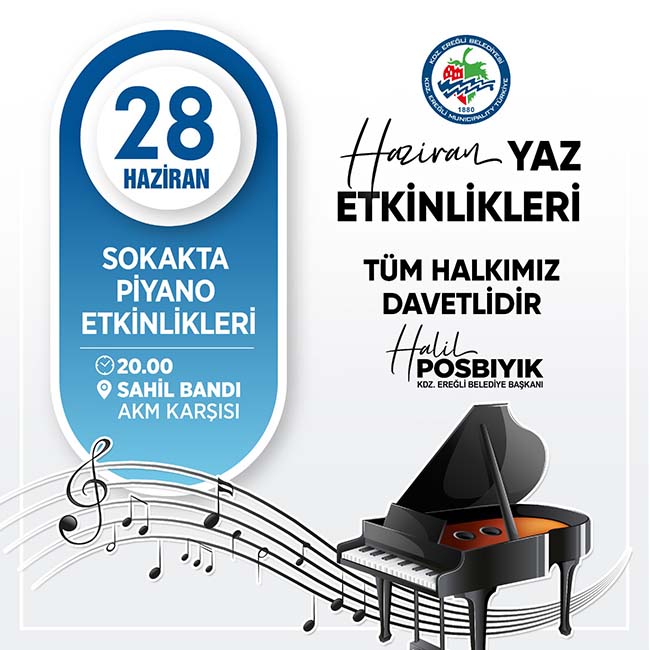 Kdz. Ereğli Belediyesi Haziran ayı yaz etkinlikleri kapsamında 'Sokakta Piyano' etkinliği düzenleneceği duyuruldu.