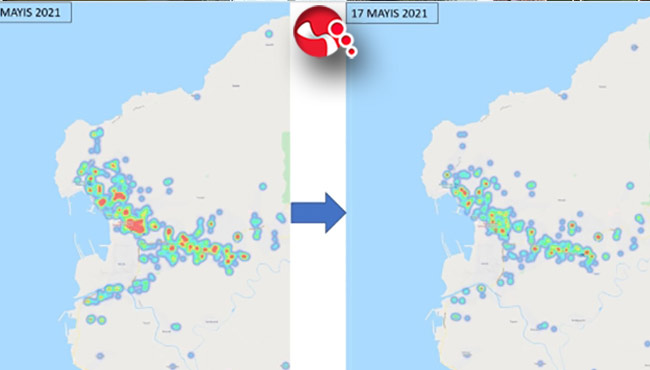 İlçede yayılım hızının da tüm yerleşim yerlerinde düşüş eğiliminde olduğu gözlendi.